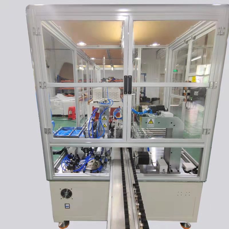 2. 本設備由plc控制和工業電腦控制,自動上料、電池中心定位、絕緣墊供料、除靜電機構、定長裁切、真空吸附膜片撐開、熱縮、自動下料等工序,工作效率高,產品性能良好.